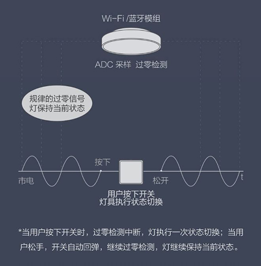 這種實(shí)現(xiàn)方式可以實(shí)現(xiàn)對(duì)于燈光的調(diào)溫、調(diào)色,同時(shí)支持語音、App控制等多種方式。但此種方式,普通開關(guān)必須保持”常開狀態(tài),一旦關(guān)閉,智能燈掉線,便無法實(shí)現(xiàn)智控。