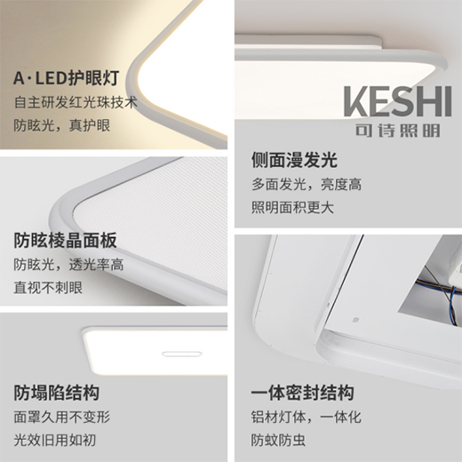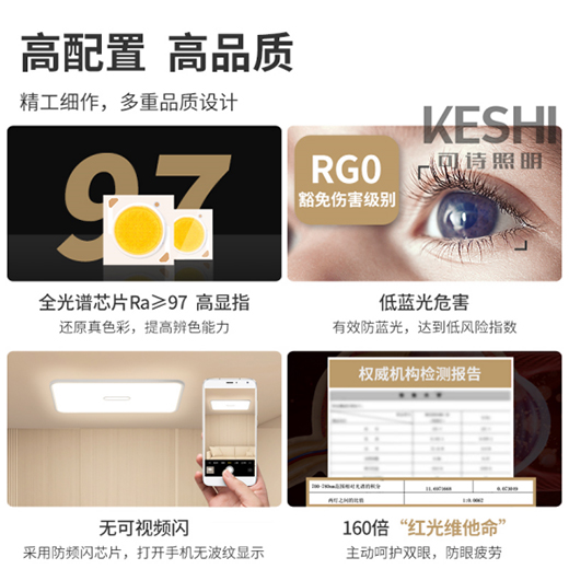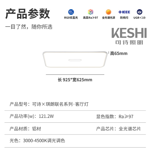 KESHI可詩照明與KingLong琪朗燈飾聯(lián)名的ALED全光譜護眼客廳吸頂燈現(xiàn)已正式上線,產(chǎn)品擁有ALED全光譜護眼、RG0低藍光、高顯指、防頻閃、強防眩、超薄超輕盈等多重優(yōu)勢,襯您的品質(zhì)之家剛剛好!