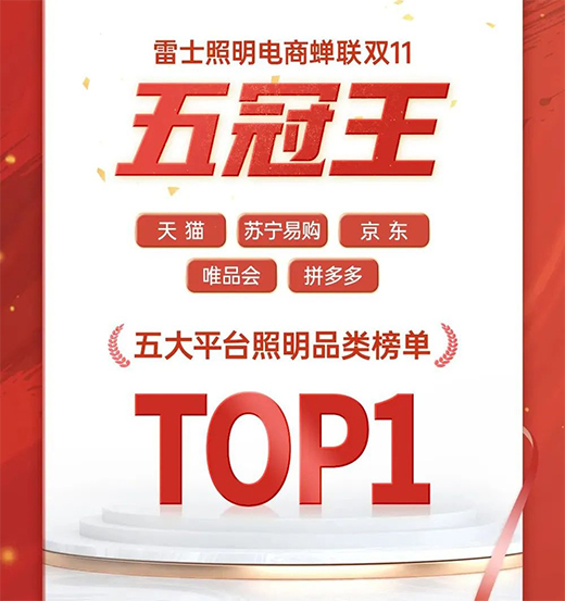 雷士照明電商今年“雙11”蟬聯(lián)天貓、蘇寧易購、京東、唯品會(huì)、拼多多五大電商平臺照明品類榜單TOP 1。此外,雷士照明抖音銷售額同比增長242%,拼多多平臺同比增長83.6%,勇奪照明行業(yè)全平臺直播銷售額TOP 1。