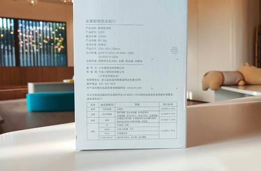 包裝側(cè)邊是米家即熱飲水機(jī)C1的基本參數(shù),產(chǎn)品由寧波心想科技有限公司代工,其實(shí)在小米有品上已經(jīng)有多款心想科技的飲水機(jī)產(chǎn)品,從用戶(hù)反饋來(lái)看,口碑都還不錯(cuò),這估計(jì)也是小米看中心想科技最重要的原因之一了。