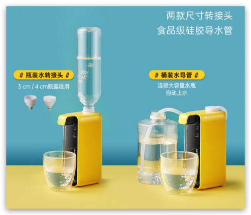 在產(chǎn)品設(shè)計(jì)上,該款產(chǎn)品同樣人性化。支持一鍵排余水設(shè)計(jì),讓你的收納更放心,攜帶防漏更方便。另外,童鎖設(shè)計(jì)和防塵硅膠蓋更是為用戶的健康帶來了保障。多種轉(zhuǎn)接頭設(shè)計(jì)功能,更是滿足你的各種需求,不管是瓶裝水,還是桶裝水,統(tǒng)統(tǒng)幫你搞定。