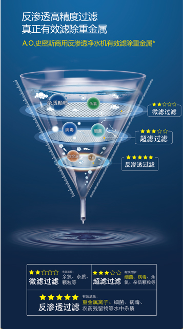 長(zhǎng)效反滲透濾芯是A.O.史密斯商用凈水的核心專利,能夠有效濾除水中病細(xì)菌、病毒、余氯、重金屬離子、抗生素等有害物質(zhì)。