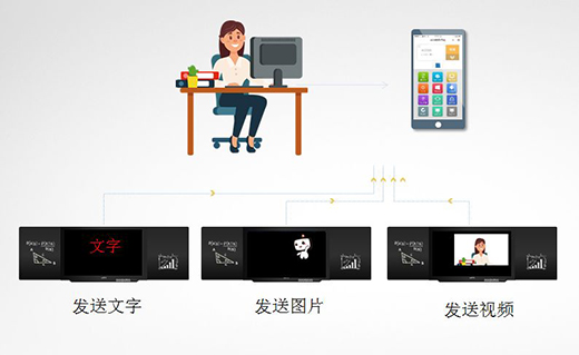 通過(guò)登陸物聯(lián)網(wǎng)2.0的管理界面,管理者可以一鍵向管控的智能黑板發(fā)送文字、圖片甚至視頻文件啦!不僅可以群發(fā)/單個(gè)發(fā),還可以分別向多臺(tái)設(shè)備發(fā)送不同的內(nèi)容,這個(gè)過(guò)程一分鐘就可以完成。