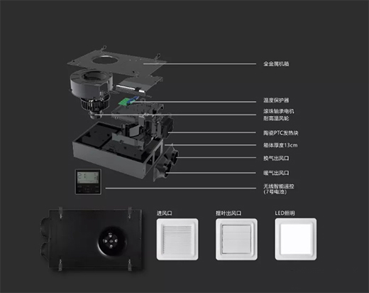 正如你所見,格勒X7S采用全金屬隱藏式機身,高度防燃防腐,絕緣噴漆工藝處理,防靜電不漏電,安全可靠;搭配多用途照明+換氣風口+取暖風口安裝,完美劃分各功能模塊,實用且高顏值;