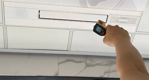 本次測試用環(huán)境:法獅龍專用產(chǎn)品測試間4平米;法獅龍專用集成吊頂;浴室初始溫度26.1℃,地面溫度26.6℃?!?/p>