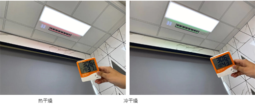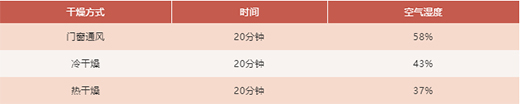 我們打開測試間花灑,連續(xù)出水10分鐘,模擬人日常洗澡的效果,經(jīng)過10分鐘的出水,室內(nèi)環(huán)境濕度高達(dá)78%。之后我們對“涼干燥”、“熱干燥”功能進(jìn)行了測試。最終得到了3組數(shù)據(jù)。