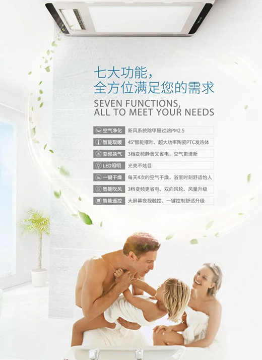 特有的負(fù)離子凈化器功能設(shè)計(jì),能夠強(qiáng)效去除浴室異味,除塵除霾除甲醛,強(qiáng)效過(guò)濾PM2.5,讓家人呼吸的每一口空氣都是新鮮氧氣,浴室洗澡洗多久都樂(lè)意。