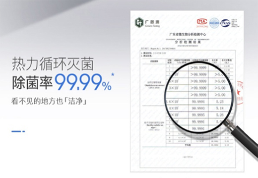 產(chǎn)品采取的75攝氏度的高壓水溫,進(jìn)行反復(fù)沖洗,能確保餐具和腔體內(nèi)的細(xì)菌得以有效消除。來自廣東微生物分析監(jiān)測中心的監(jiān)測報告,華帝洗碗機(jī)H5的熱力循環(huán)滅菌技術(shù),其除菌率高達(dá)99.99%,最頑固的細(xì)菌均可得以消除。