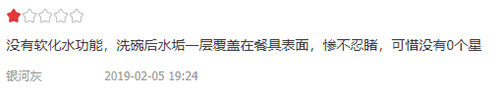 一些洗碗機(jī)產(chǎn)品,由于款式較老或成本限制,沒有軟水功能。沒有軟水功能的產(chǎn)品,在用戶評(píng)價(jià)中收到了較多的吐槽。