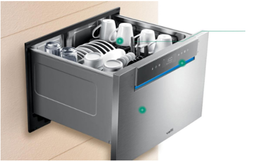 智能科技正在逐步滲透到廚房家電的每個細節(jié),從而改變我們的生活方式。當你在打掃廚房不方便用手打開洗碗機時,輕聲一喚,搭載科技呼吸燈光和語音提醒的洗碗機將自動開門,避免手上油污印在洗碗機上,它還有一種全新的打開方式:觸控開門的新方式,只要膝蓋輕輕一碰,門板便會自動開啟,
