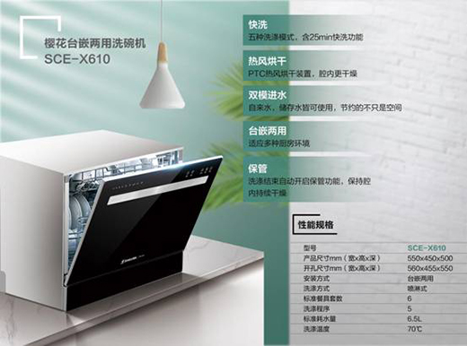 受到2020新冠病毒的影響,人們的消毒防護意識猛升,因此也帶動了一大批消毒防疫產(chǎn)品的銷量增長,從口罩到消毒液,從酒精到濕巾紙,從防護面具到各種防疫電器,一直處于供不應(yīng)求的市場狀態(tài)。而作為避免“病從口入”的洗碗機,消費者的關(guān)注也達到了空前的高度,由此可見這次疫情在一定程度上也為健康式電器樹立了不可或缺的地位。SAKURA櫻花洗碗機X610,自上市就備受市場熱捧,五種主流洗滌模式(強力洗、即時洗、節(jié)能洗、晶亮洗、快速洗),一鍵式按鈕,使用超貼心,最快25分鐘即可完成整個過程。并且在烘干方式上采用的是熱風烘干,能夠有效避免細菌的滋生,并且在一定程度上也能夠?qū)崿F(xiàn)殺菌消毒的效果,為餐具安全保駕護航,更為入口防護升級。