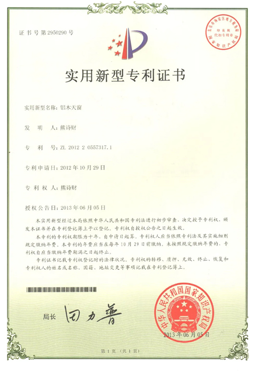 葉陽擁有多項自主知識產(chǎn)權(quán)、國家實用新型專利,外觀設(shè)計專利,陽光房技術(shù)專利,發(fā)明專利等專利證書。