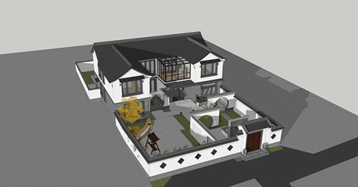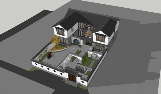 建筑為中式風(fēng)格,整體配色較為樸素,大量白色的真石漆與深色屋頂相呼應(yīng),烘托出中式建筑的樸素風(fēng)格,再搭配南側(cè)通透的陽光房空間,將中式宅院的精美展現(xiàn)得淋漓盡致。