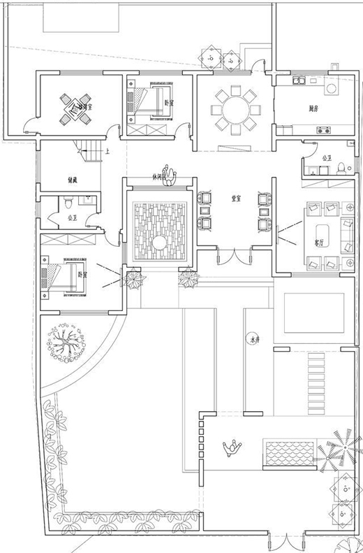 宅基地東、西側(cè)有鄰居。業(yè)主在項目前期表示喜歡中式風(fēng)格的宅院,在房間功能方面有較為明確的需求,并希望預(yù)留陽光房空間。