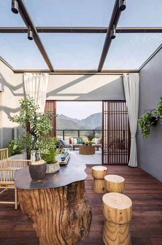 又是一款中式風格的封院子,不同的是它將小院完全的作為了會客廳使用,給予這片空間意想不到的功能。