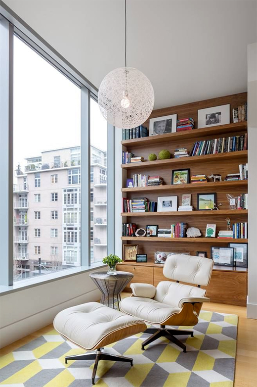 房子面積小,一般都不設(shè)有單獨(dú)的書房或工作間,其實(shí)稍加改造,搭配書柜、寫字臺(tái)、休閑椅就能將陽(yáng)臺(tái)“打扮”成一間別具一格的雅致的陽(yáng)光房,既可在此與友人敘談,書寫疲倦時(shí)還是伸展軀體、放松神經(jīng)的氧源豐富的休憩之地。