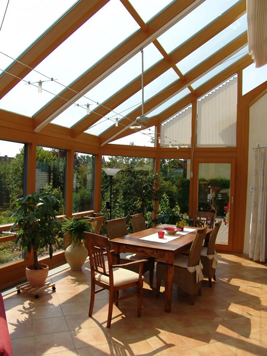 在日暖風(fēng)和的天氣,坐在陽光房里,聞著花香,透過屋頂玻璃,看風(fēng)云瞬息;
