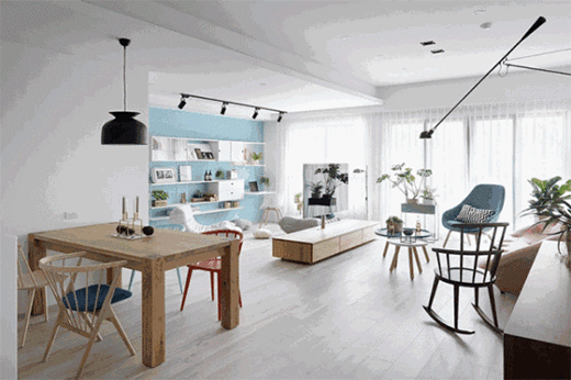 隨著80后、90后成為家裝消費(fèi)主力,打破毫無(wú)新意的以電視墻為中心的客廳設(shè)計(jì),讓客廳設(shè)計(jì)變得更加有創(chuàng)意!他們結(jié)合自己的家庭興趣為中心打造一個(gè)集看劇、玩耍、吃飯、看書(shū)為一體的空間,才是living room真正的意義。