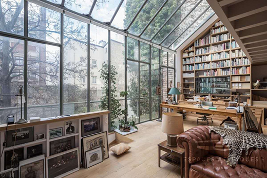 將其改造成書(shū)房,通透的大天窗,將光線援引進(jìn)室內(nèi),在自然景致的變幻莫測(cè)下,與生活和工作為伴。疲勞或者閑暇時(shí)刻,站在室內(nèi)或者躺在沙發(fā)上,看看景致,賞賞月,別提有多美了。