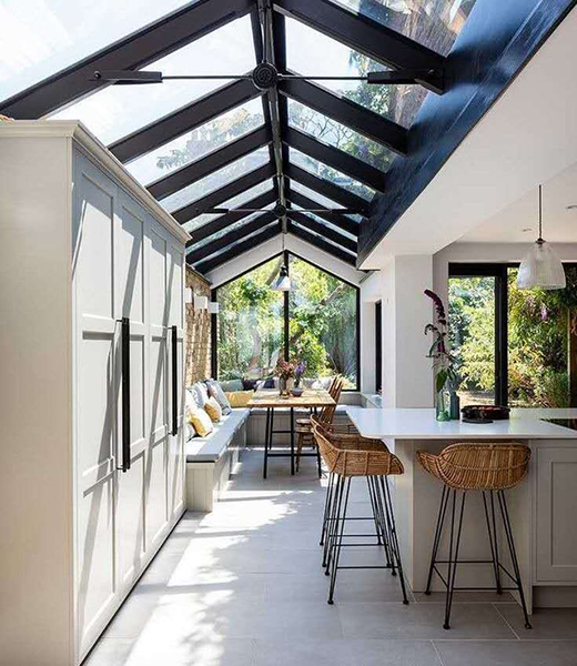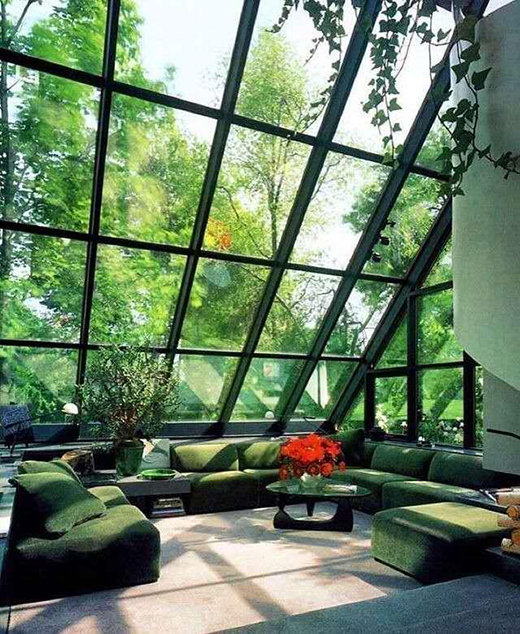 還可將陽(yáng)光房裝扮成客廳、廚房等,陽(yáng)光透過(guò)庭院中的樹(shù)叢,將樹(shù)影倒映在室內(nèi),給人一種光影斑駁的朦朧質(zhì)感。就算與自然相隔一面墻或者是一面玻璃板,都不妨礙將自己置身于大自然中。