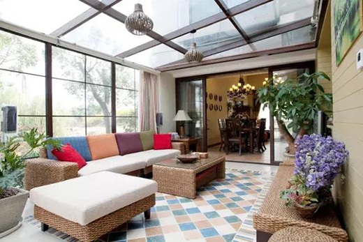 平頂陽光房造價低,簡潔靈活,占地小,性價比高,適合區(qū)域為公寓無頂陽臺,別墅底層。