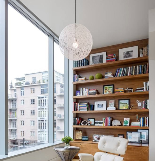 常見的兩居室,很難配置書房,此時便可以將陽臺利用起來,設(shè)計一處優(yōu)雅安靜的書房,在陽光明媚的午后,一杯咖啡,一本小說,靜靜感受時間的悄然流逝。對于整日疲于奔波忙碌的都市人們來說,這樣的午后不失為一種美的享受。