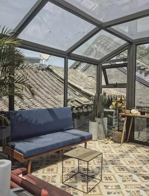 陽光房頂樓的積水問題采用里高外低小斜坡避免積水聚雜物。