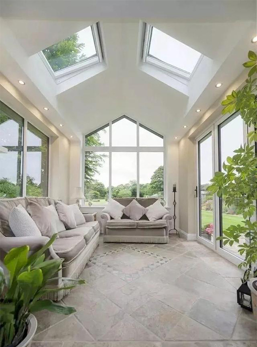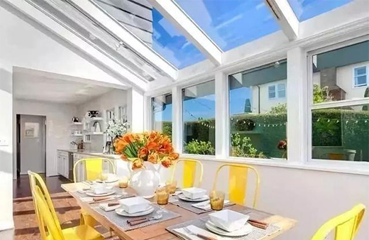 如果陽光房面積不小,在搭建過程中記得要預(yù)留天窗,有條件還可以安裝電動天窗設(shè)備。