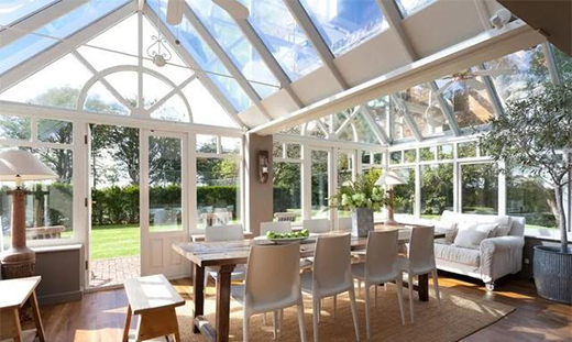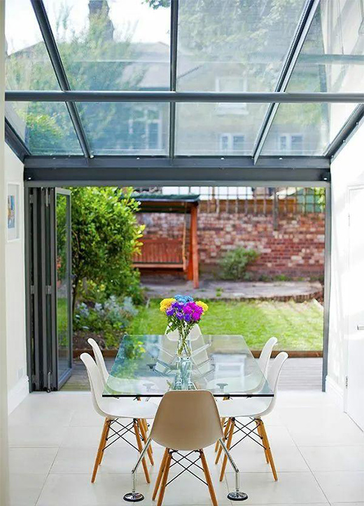 當(dāng)庭院需要一個較為穩(wěn)定可控的環(huán)境時,不論是栽種植物,還是作為休閑空間、餐廳,陽光房都是很不錯的選擇。