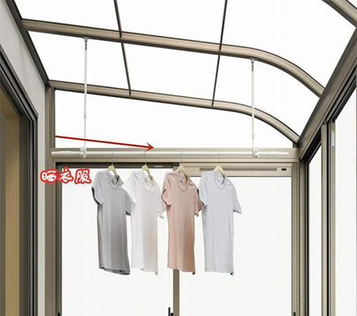 為啥只封一半陽臺呢?其實主要是出于2個目的:首先當然是為了曬衣服啊,家里雖然裝了烘干機,但還是喜歡衣服上曬干的陽光味道,但所謂天有不測風云,有時候出門的時候卻開始下雨,這在露臺上掛的衣服豈不是白洗了?因此露臺空出一半裝個弧形陽光房,把衣服都掛在里面,這樣不管是下雨還是下雪,既不怕被刮走也不怕弄濕,光線也不受阻礙,真的簡直不要太實用!
