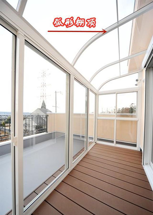 尤其是雨水比較大的時候,直挺挺的棚頂可能會出現(xiàn)積水,繼而導致陽光房出現(xiàn)漏水的情況,但換成弧形棚頂就要好很多,排水嘩嘩流,大大降低了漏水的幾率。