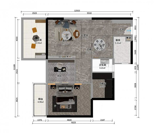 在現(xiàn)代簡(jiǎn)約的基礎(chǔ)上凸顯高端品味的生活,室內(nèi)布局用灰色和黃色進(jìn)行延展,緊跟2021年家裝流行趨勢(shì),營(yíng)造高級(jí)有檔次又充滿溫暖氣息的居家氛圍。
