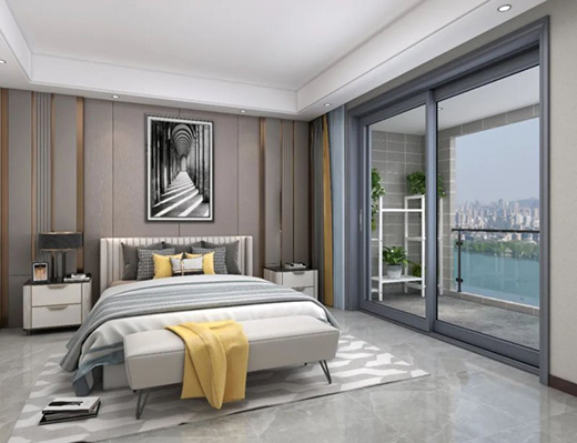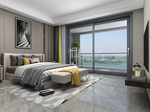 窄勾企設(shè)計(jì),躺在床上,就能一覽門外江景,這就是臥室陽(yáng)臺(tái)安裝推拉門的魅力,將私密空間與開放空間隔斷,滿足空間功能劃分和隔音效果的雙重需求。經(jīng)典的灰調(diào)門框,彰顯設(shè)計(jì)的時(shí)尚感與品質(zhì)感?;遗c黃的交融布局,兼顧摩登的同時(shí)又讓人感覺到溫馨。