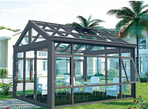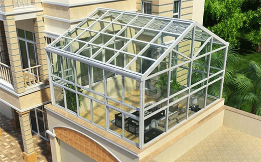 陽光房頂部造型:斜頂陽光房、弧形頂陽光房、人字頂陽光房、組合頂陽光房和異形頂陽光房;
