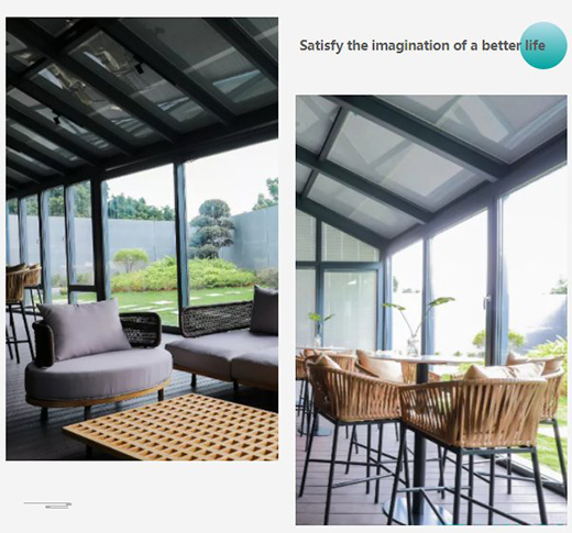 圣米蘭陽光房系列,把自然引進住所,讓陽光沐浴生活,與星空透明接觸,和風雨親近對話,讓生活充滿一幅如詩如畫的風景,為平淡的生活增添浪漫情調(diào)。
