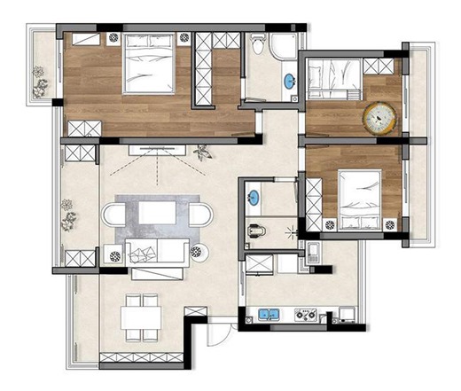 ?、輸U(kuò)大主臥的空間,增加獨(dú)立衣帽間,讓儲(chǔ)物空間更豐富。