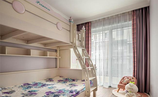 兒童房溫暖明亮,充滿童趣,使小朋友有一個(gè)浪漫且溫馨的童年。兒童房使用的上下床不僅節(jié)約了空間,同時(shí)也擴(kuò)大了個(gè)人的功能需求。
