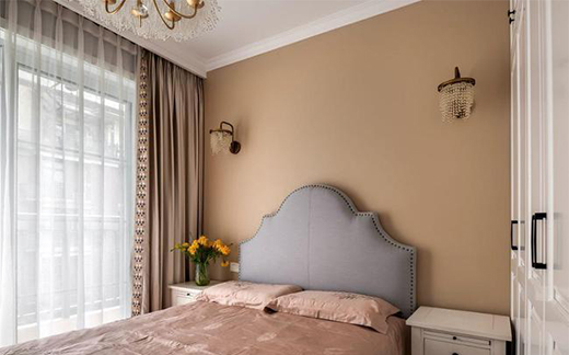 簡(jiǎn)單的拼接窗簾傾注了浪漫風(fēng)情,床頭運(yùn)用的圓弧線條,呈現(xiàn)出輕柔,無(wú)拘無(wú)束的睡眠感受。精致的水晶吊燈,放任思緒無(wú)意識(shí)地去感受各種可能的聯(lián)系。