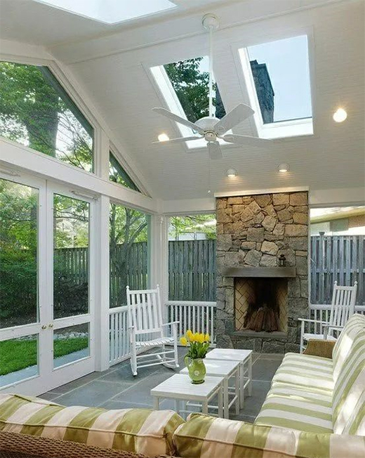 陽光房的頂部安天窗,這樣配合窗戶使用,產(chǎn)生對流,熱氣能更好的排出室內(nèi)。