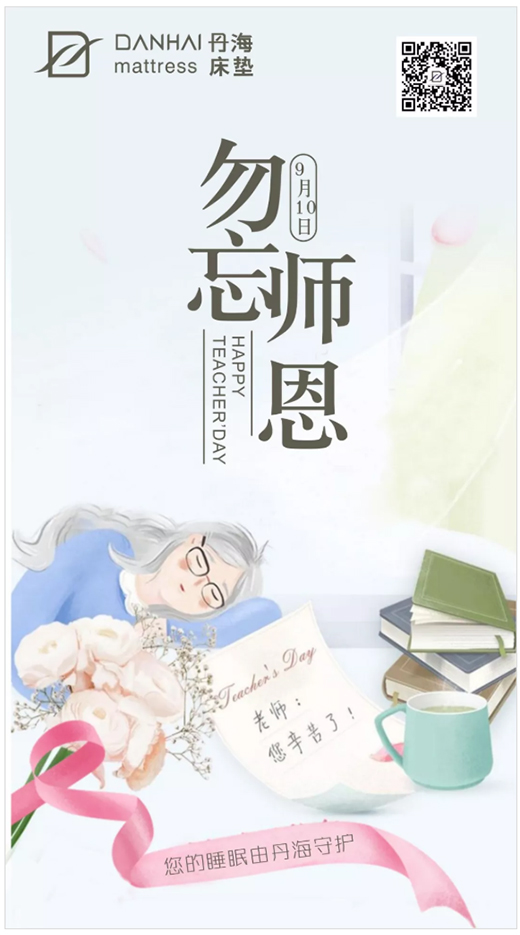 教師節(jié),丹海床墊祝天下所有老師節(jié)日快樂,愿你們被更多人理解尊重,愿你們這一生夜夜好夢。