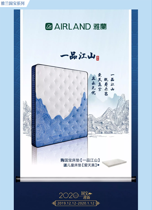 活動期間內(nèi)凡購買國寶系列床墊,還可享受買主臥送次臥的美事:購【一品江山】床墊,送愛【天真】床墊;購【云巒】床墊,送【波普流行版】床墊;購【常磐】床墊,送【醒樂旗艦版】床墊。