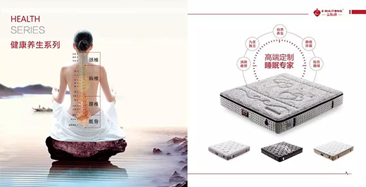 2019年7月,益脈通全新研發(fā)的12款床墊新品亮相東莞展,引起同行業(yè)及各界媒體的廣泛關(guān)注!2019年底,益脈通品牌全新系列——舒享深睡系列產(chǎn)品投入生產(chǎn),將為經(jīng)銷商及客戶朋友們帶來全新的睡眠體驗(yàn)!