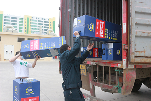 舒達(dá)工作人員正在加緊搬運(yùn)睡眠產(chǎn)品援助物資