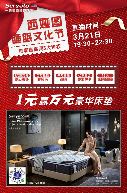 良好睡眠,健康中國。2020年3月21日晚上19:30,西婭圖與您相約睡眠文化節(jié)。