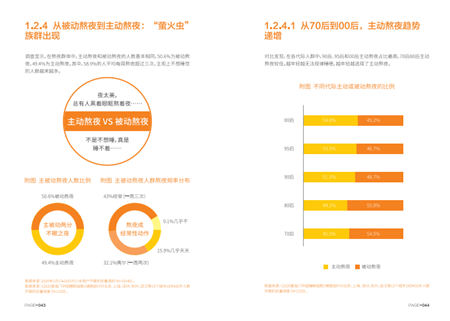 報(bào)告數(shù)據(jù)顯示,2019年43%的人睡前1小時(shí)都在玩手機(jī),58.9%的國(guó)人平均每周熬夜達(dá)三次以上,其中有49.4%的人選擇主動(dòng)熬夜,而這些主觀上“不想睡”的人中以90后、95后和00后占比最高,達(dá)52.5%。越夜越美麗的“螢火蟲(chóng)族”越來(lái)越多。