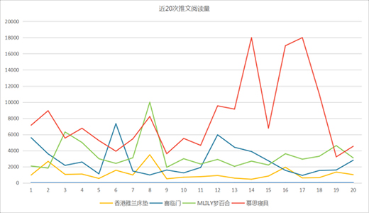 除了官方網(wǎng)站之外,企業(yè)官方MCN的運營也是衡量企業(yè)“聲量”的重要指標(biāo)。新浪家居對比整理了雅蘭、喜臨門、慕思、夢百合等四家寢具企業(yè)最近20次的公眾號推文,從推文數(shù)量和閱讀量(最近20次推文首條內(nèi)容的閱讀量)來看,都屬雅蘭最低。