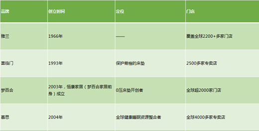 1993年成立的喜臨門,后來者居上,成為了“中國床墊第一股”;2003年的夢百合,靠零壓綿概念,打開國內(nèi)市場,也已于2016年A股主板上市;同在華南的慕思,更是在2004年成立之后迅速殺出一片血路,將品牌釘入了消費者心里。