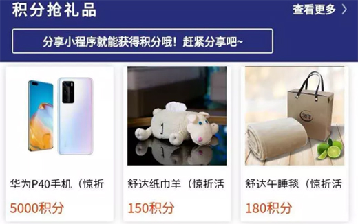 03 積分兌換豪禮「驚折5」最新玩法,分享小程序就能獲得積分,積分足夠就能兌換華為P40手機(jī)、床墊、凝膠枕、乳膠枕……快快號(hào)召親朋好友玩起來。