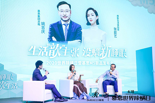 活動現(xiàn)場,張歆藝在充分體驗和全面了解慕思M5防螨床墊后,與慕思總裁姚吉慶就睡眠環(huán)境除螨、健康等話題進(jìn)行了深入交流。張歆藝分享了她對于睡眠的要求,一定要睡得好,才能保障好心情,人的整體狀態(tài)才能活力十足。而好的睡眠,就應(yīng)該用慕思M5床墊這樣的好產(chǎn)品。