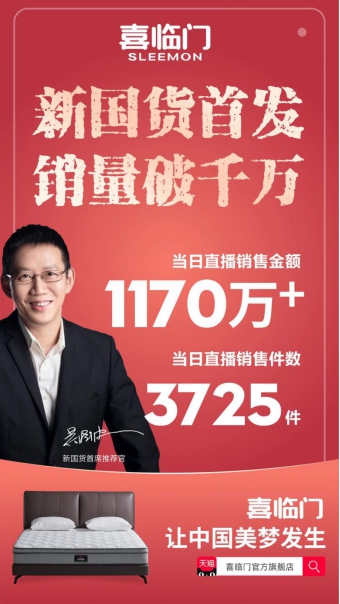 6月29日晚,喜臨門攜手中國著名經(jīng)濟(jì)學(xué)人、中國企業(yè)家、財(cái)經(jīng)作家、新國貨推薦官吳曉波在淘寶開啟“新國貨首發(fā)”直播,推出爆款抗菌床墊—4D床墊護(hù)脊版、皮床浮士德以及床墊和皮床套餐。